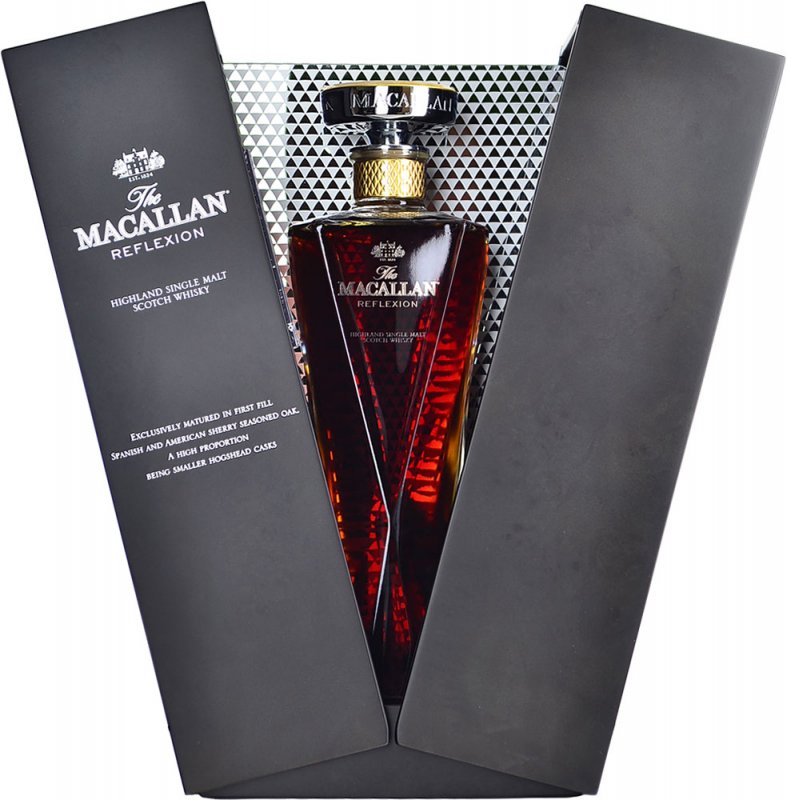 Macallan Reflexion is an exceptional single malt that has obtained its colour and flavour from maturation in smaller hogshead casks. This allows a greater surface area of wood to interact with the whisky to deliver an intricate character influenced by both Spanish and American oak casks. The depth of colour and complex flavour profile of Reflexion comes from the use of first-fill casks. These have been carefully selected for this distinctive expression to accentuate its aromas and flavours. Bold and full bodied, Reflexion is a celebration of floral and vanilla notes, punctuated with fresh apples and apricots.