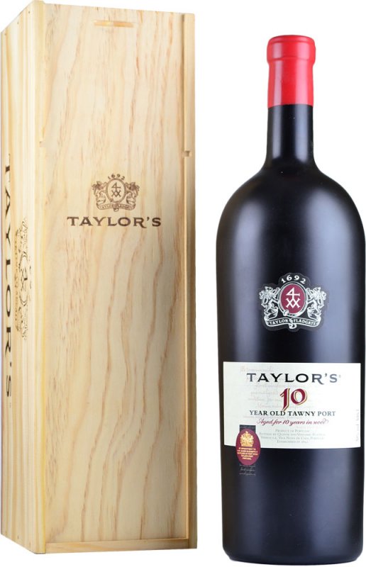 An impressive looking 3 litre bottle of Taylors 10 Year Old Tawny Port. Mellow and elegant combining delicate wood notes with rich aromas of mature fruit. The port is made from a blend of Touriga Nacional, Touriga Francesa, Tinta Roriz, Tinta Barroca, Tinta Cao & Tinta Amarela. Taylor's 10 Year Old Tawny is bottled when ready to drink and will not improve if laid down in bottle. It is an excellent accompaniment to nut based desserts and is ideally served slightly chilled. Best enjoyed up to 4 weeks after opening. Taylor's 10 Year Old Tawny is a superb example of an aged tawny port, made from selected full red ports grown in the best vineyards of the Cima Corgo and Douro Superior. The individual wines are laid down to age in oak casks of about 630 litres capacity for an average of 10 years, during which time they lose their initial dark purple-black colour and take on the delicate 'tawny' hue from which the wine takes its name. The bottle comes presented in a Taylors branded wood box. |